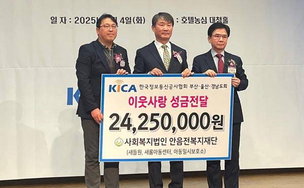 한국정보통신공사협회 부산 울산 경남도회(도회장 김태연)는 지난 4일 농심호텔 대청홀에서 열린 제42회 정기총회에서 아동양육시설 새들원, 아동보호치료시설 새롬아동센터, 부산시 아동일시보호소에 총 2425만 원의 후원금을 전달(사진)했다.