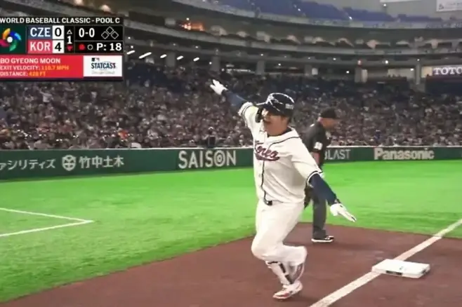 일본 도쿄돔에서 터진 문보경의 만루홈런이 한국 야구계에 또 다른 파장을 일으키고 있다. WBC 1라운드 C조 체코전에서 1회 만루 상황, 2볼 1스트라이크 카운트에서 체코 선발투수 다니엘 파디사크의 81.5마일 슬라이더를 받아친 문보경의 타구는 우중간 담장을 시원하게 넘어갔다.
