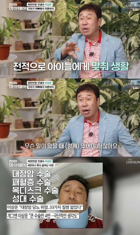 이상운은 "제가 탤런트였다면 우리 아이들이 놀림받지는 않았을텐데 아이들 친구들이 '쟤네 아빠 개그맨'이라고 놀려대서 아이들을 미국으로 보냈다"며 7년간 기러기 아빠로 살았던 것을 언급했습니다. 이어 "시차 문제 등으로 아이들과 소통이 쉽지 않았다. 환율 등으로 인한 경제적 어려움도 있었다. 아플 때도 혼자였다"고 힘들었던 당시를 회상했습니다.