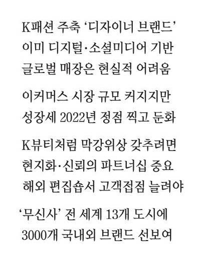 국내 패션 산업이 다시 한번 변곡점에 섰다. 코로나19 팬데믹을 거치며 온라인을 중심으로 급성장했던 K패션은 이제 고물가와 내수 침체라는 현실의 벽 앞에 서 있다. 특히 신선한 크리에이티브와 감각적인 브랜딩으로 10·20대의 마음을 사로잡았던 디자이너 브랜드들은 해외로 눈을 돌리고 있다. 생존의 돌파구를 찾기 위한 K패션의 글로벌 진출은 더 이상 선택이 아닌 필수다.