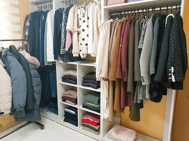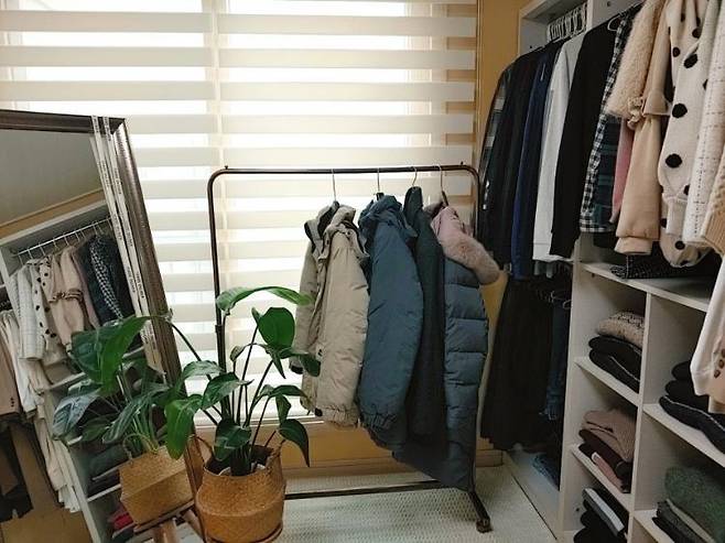 계절에 입는 옷만 걸어두고 깔끔하게 유지하고 싶어서 옷도 많이 정리했어요. 걸려있는 옷들도 입는 옷만 입게 되는데 앞으로 조금씩 더 정리할 예정이에요.