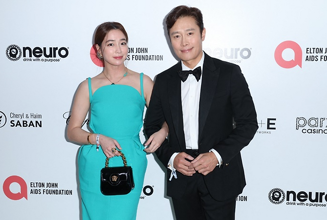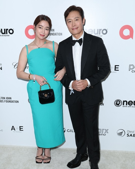 할리우드에서 열린 엘튼존 에이즈 재단이 개최한 아카데미 뷰잉 파티에 동반 참석한 이민정과 이병헌은 드레시한 의상으로 눈길을 끌었다.