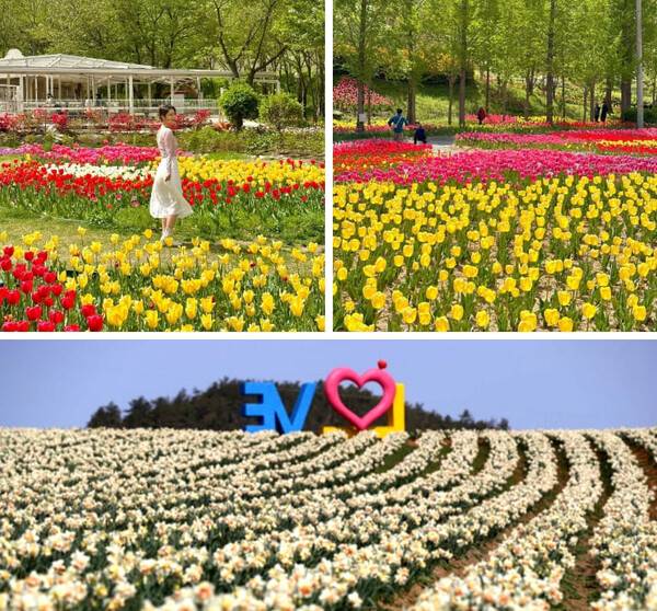 형형색색의 아름다운 옷을 입은 튤립들과 우아한 멋을 자랑하는 수선화의 향연을 눈에 가득 담을 수 있는데요. 특히 이곳에는 플라워 아트 전시관이나 꽃들로 만든 다양한 조형물들로 인해 인생사진을 찍을 수 있도록 되어있습니다.