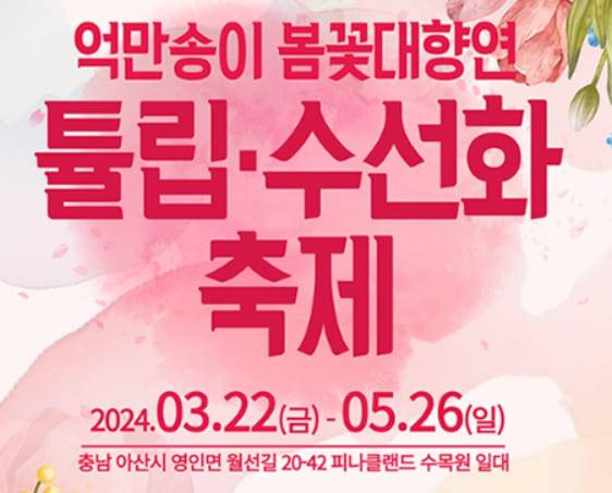 피나클랜드는 충청남도를 대표하는 관광지 중 하나인데요. 이 수목원에서 세 번째로 선보이는 봄꽃축제인 튤립 수선화 축제는 지금까지와는 전혀 다른 규모의 축제입니다.
