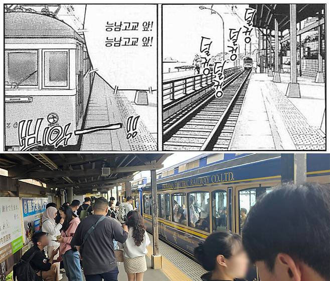한 15분? 정도 타고 가면 1번 목적지인 카마쿠라코코마에(카마쿠라 고교 앞)가 나옵니다.