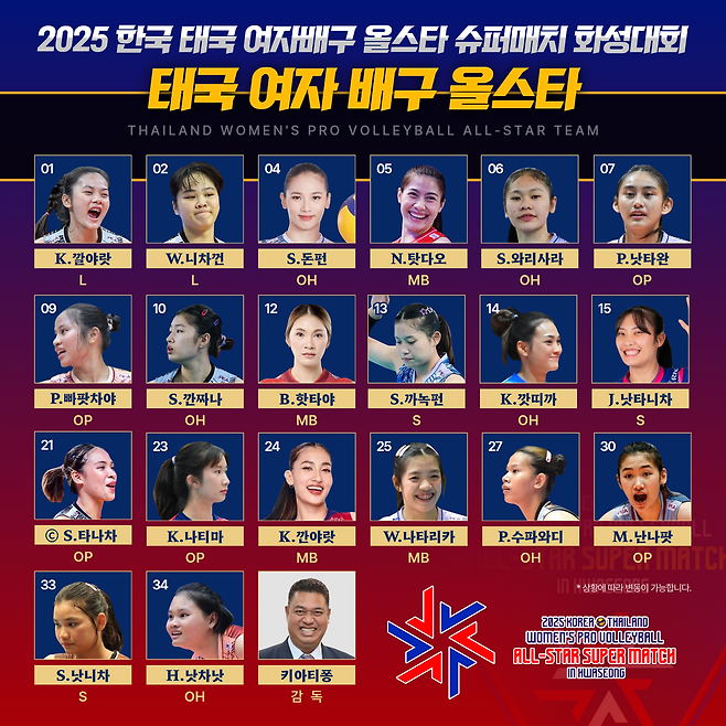 태국 올스타는 한국도로공사에서 2시즌을 뛴 타나차를 비롯하여 지난해 KOVO컵으로 한국을 찾았던 돈펀 신포등으로 구성이 되었습니다.