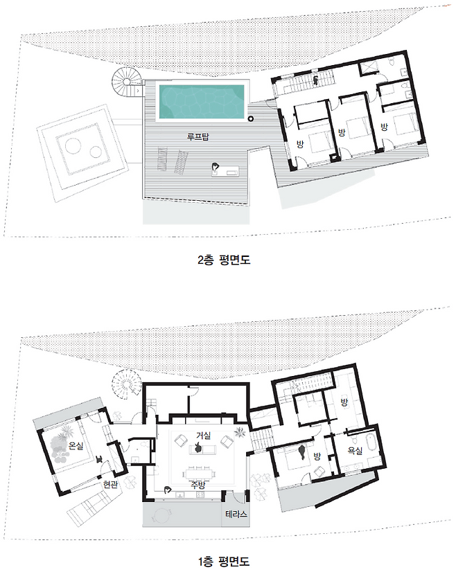 본 주택은 수영장을 포함한 2층 규모로 설계됐다. 주변과 대지를 조사하며 처음 설계 방향은 환경과 조화롭게 어우러지는 것으로 설정했다. 동시에 건축주의 요구를 디자인에 반영하면서도 공간 계획을 통해 콘텐츠와 기능이 시너지를 더하는 시스템을 적용하고자 했다.