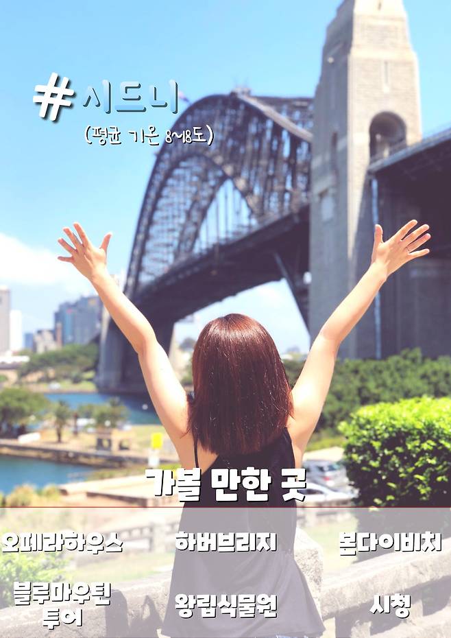 시드니는 남반구에 위치해 여름철에도 선선하며, 도심 속에서 예술과 자연을 동시에 즐길 수 있는 여름에 가기 좋은 해외 여행지 인데요. 세계적인 건축물인 오페라 하우스에 방문하여 내부 투어를 즐긴다거나 본다이 비치의 청록빛 해변에서 서핑과 여유로운 산책도 즐길 수 있습니다.