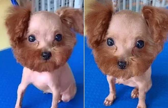 분명히 복슬복슬한 털을 깔끔하게 잘 정리해줄 거라고 생각했는데 턱과 귀 부분만 덩그러니 털이 남겨져 있는 푸들 강아지.