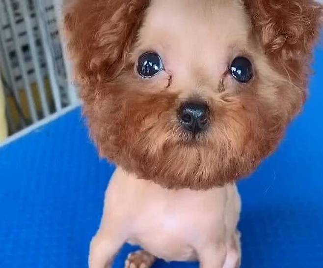 특별히 주문한 것이라고는 그저 예쁘게 미용해달라고 한 것이 전부인데 미용사는 왜 이렇게 푸들 강아지의 털을 미용한 것일까요.