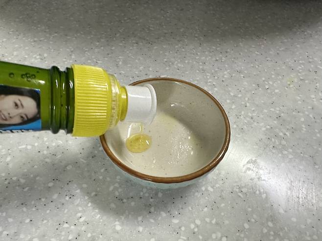 그리고 기름을 붓고 나면 깔끔하게 끊어지는 것이 아니라 병 입구 주변으로 기름이 흘러서 끈적이고 지저분해집니다.
