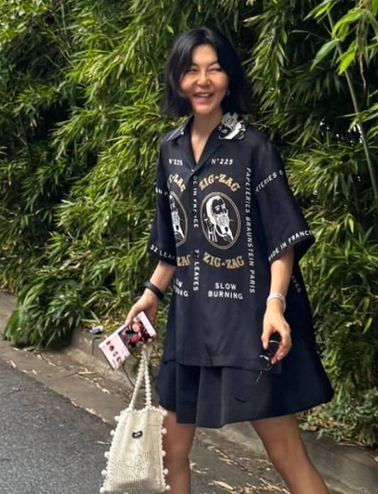 아이템들을 검은색으로 통일했지만, 상의의 프린팅이 심심함을 없애고 화려함을 더하네요.