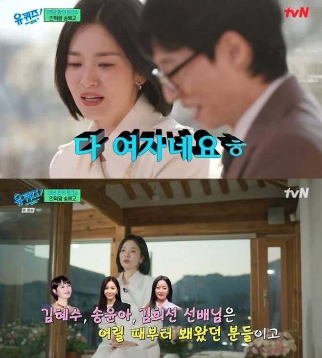8일 방송된 tvN '유 퀴즈 온 더 블럭'에서는 송혜교가 무려 23년 만에 토크쇼에 출격했습니다.