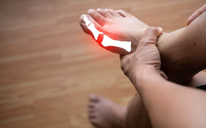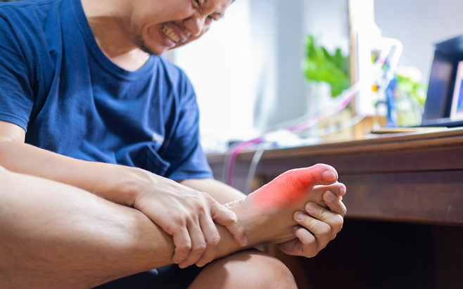 특별한 외상이 없는데도 엄지발가락 관절이 붓고 빨갛게 변하면서 심한 통증이 느껴진다면 통풍 초기일 가능성이 높습니다. 특히 밤에 갑자기 통증이 심해진다면 즉시 병원을 찾아야 합니다.