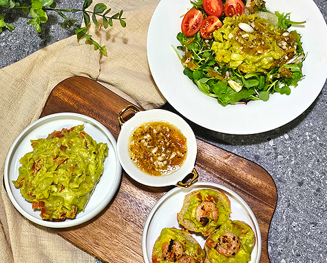 푸른잎 채소 위에 과카몰리 + 유자드레싱→ 느끼함 없이 개운한 한 끼 샐러드 완성