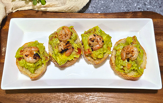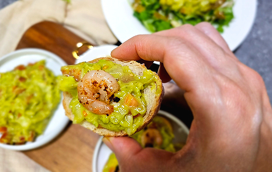 바게트에 얹고 구운 새우를 올려서→ 카페 감성 나는 아보카도 오픈샌드