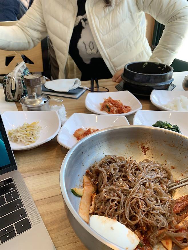 | ▲ 점심시간을 이용해 인터뷰 중인 정귀자씨. |