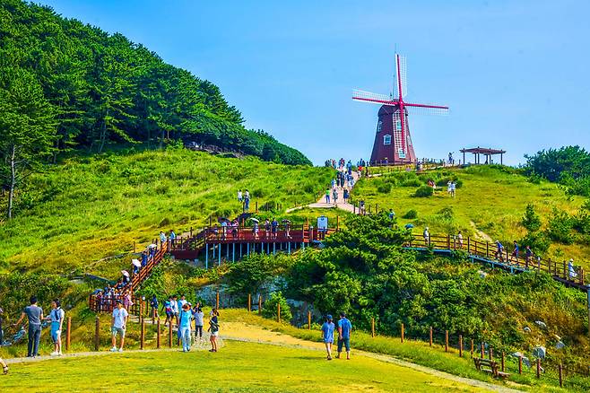 바다를 가로지르는 해금강은 거제의 대표 명소로, 해안선을 따라 펼쳐진 기암괴석과 푸른 바다가 어우러져 경이로운 풍경을 선사합니다. 또, 바람의 언덕에서는 탁 트인 바다 전망을 배경으로 사진을 남기기에 좋습니다.