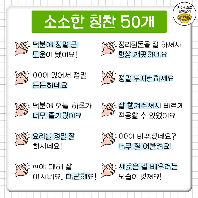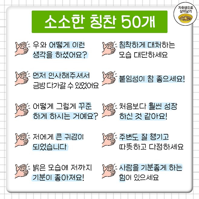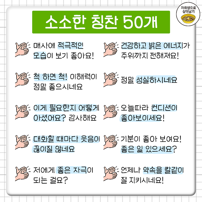 부담스럽지 않게 주고받는 소소한 칭찬 50가지