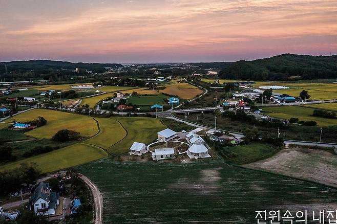 둘러싸고 둥글게 모인 집들. 안식을 위해 머무는 나그네들