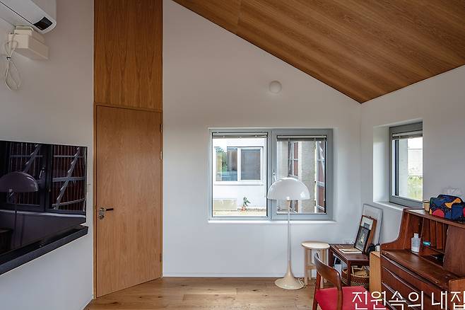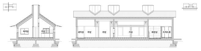 ‘겸씨의 집’은 강원도 강릉에 위치한 ‘호지’ 펜션의 주인 부부와 개구쟁이 아들, 그리고 점잖은 개 한 마리가 함께 사는 33평의 단독주택이다. 이 집의 평면은 방들이 두 줄로 나란히 나열된 것이 특징인데, 이는 작은 면적을 효율적으로 쓰고 형태를 단순화하기 위한 의도이다. 그로 인해 한 방향으로 경사진 천장을 가진 방들은 작은 집에 풍부한 공간감을 제공한다.