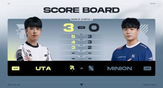 세트스코어 2대0. 앞선 두 세트를 연달아 내준 MINION은 3세트 선제골을 넣으며 분위기를 반전하고자 했으나, UTA가 곧바로 동점 골을 넣어 전반 30분 기준 1대1 동률이 됐다.