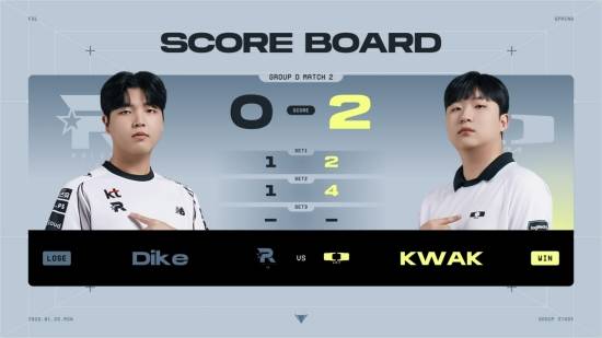 네 번째 경기는 그룹D M2 kt롤스터(KT) 'Dike' 강무진 선수와 디플러스 기아(DK) 'KWAK' 곽준혁 선수의 대결.