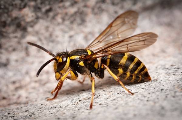 | ▲ 왕바다리(쌍살벌의 순우리말로서 '뻗은다리'를 뜻함). 드물지만 침에 쏘이면 20분 정도 아픔이 지속된다. |
