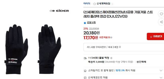 이정도도 추위에 부족하다 싶으면, 3M등에서 나오는 저렴한 이너용 사용.