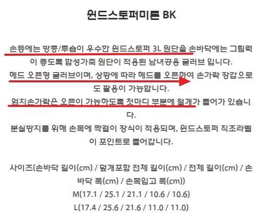 주의, 윈드스토퍼, 인피니엄은 의류, 용구 어디든 간절기와 동계용이 나옴. 구입시 확인.