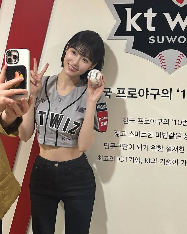 서지혜가 kt wiz 홈경기 시구자로 등장하며 눈길을 끌었다. 인스타그램을 통해 공개된 사진 속 서지혜는 회색 크롭 야구 저지에 블랙 데님 팬츠를 매치해 스포티하면서도 세련된 무드를 연출했다. kt wiz 로고가 새겨진 배경 앞에서 밝게 미소 지으며 포즈를 취한 그녀의 모습은 많은 팬들의 관심을 끌었다.