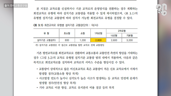 "이 회전교차로 같은 경우 이제 교통량하고 좀 밀접한 영향이 있거든요. 교통량이 많으면 오히려 더 정체가 더 심해지고 또 위험해지고 그렇습니다. 서울이라든지 어떤 차량 운행이 많은 지역에서 회전교차로를 설치하고 그러면 오히려 교통 정체가 더 가중되거든요.”