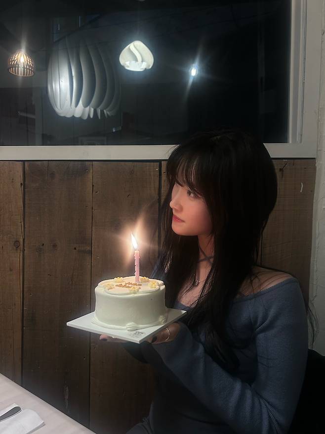 생일 케이크의 촛불 조명 아래선 목선과 어깨 라인이 살짝 드러나는 게 확실히 더 예쁘게 나와요.