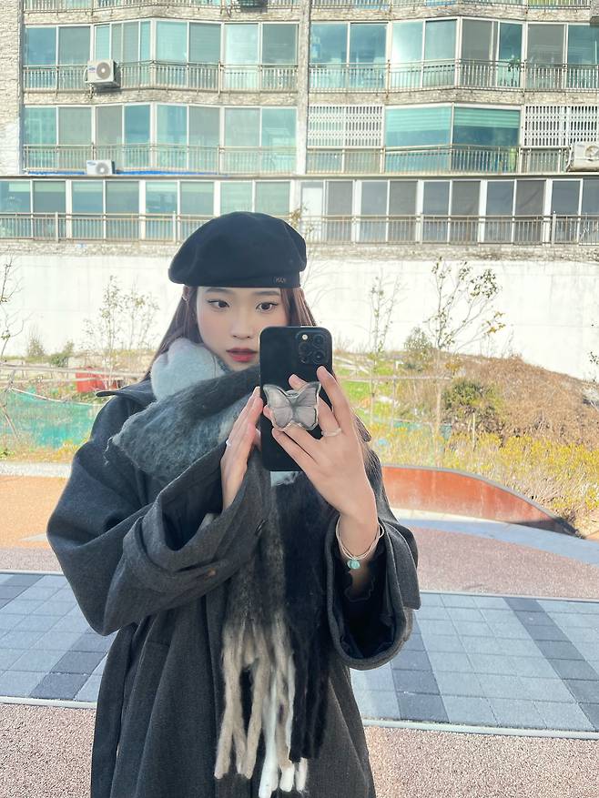 베레모가 얼굴 라인을 부드럽게 잡아줘서 햇빛 아래에서도 그윽한 무드가 예쁘게 살아나거든요.