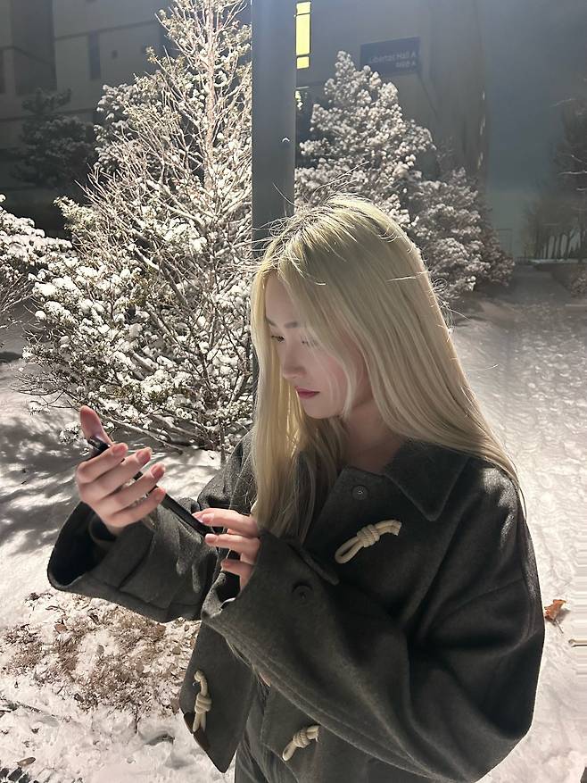 저는 금발 헤어와 차콜 코트의 조합을 선택했는데,