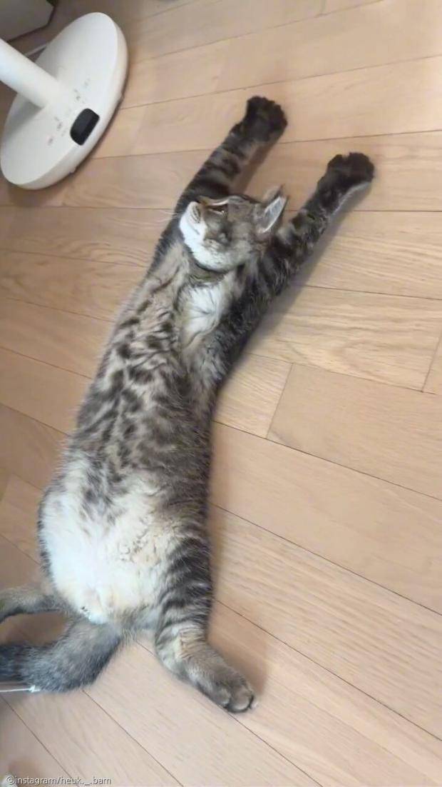 집사님의 인스타그램을 보면 흑밤이는 평소에도 바닥에 벌러덩 누워있는 경우가 많은 듯한데요.