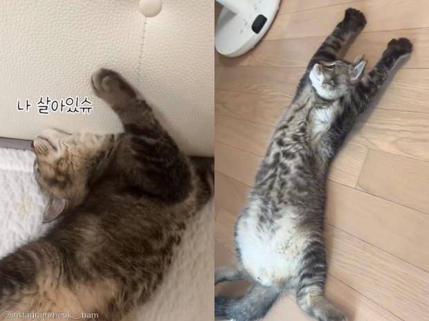 영상을 접한 네티즌들은 "저도 놀라서 흔들어봤을 것 같아요" "강아지도 가끔 이러는데 순간 식겁해요" "쿨한 고양이ㅋㅋ" 등의 반응을 보였습니다.