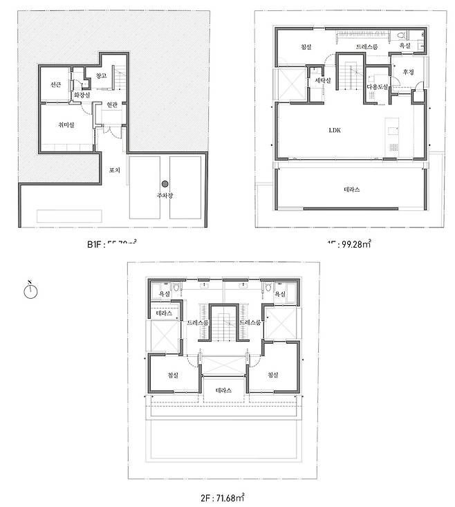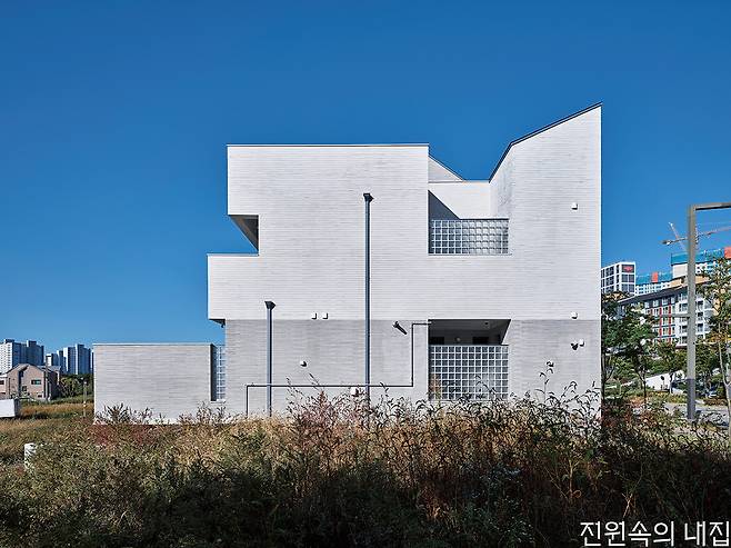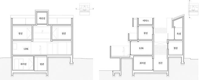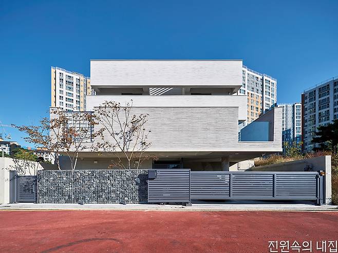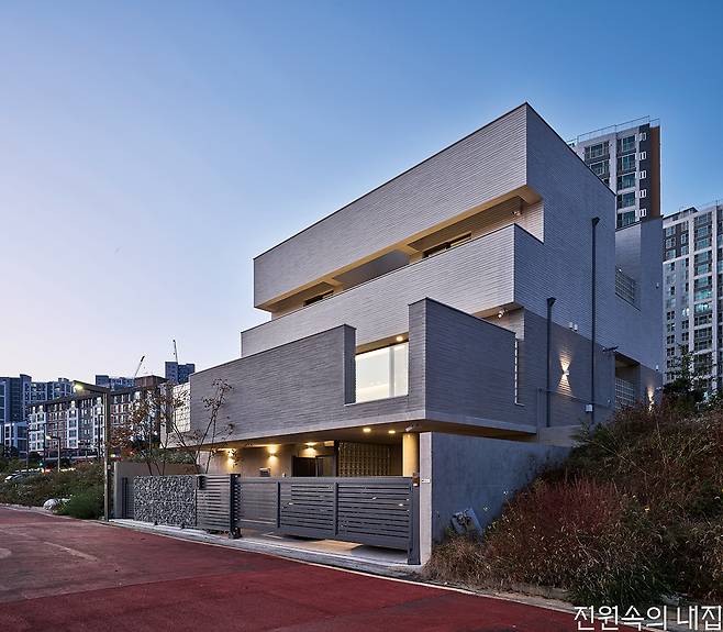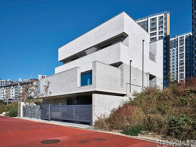 지구단위계획 구역의 정형화된 조건 아래에서 시작한 집짓기. 프라이버시를 지킴과 동시에 시각적으로 열린 구조를 만들기 위해 계단식 테라스 주택을 계획했다.