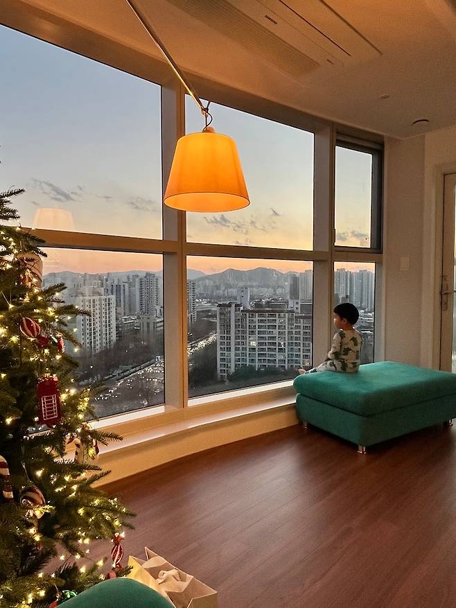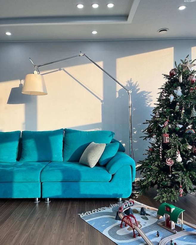 크리스마스 시즌의 저희 집이에요. 기존의 아이 서재 자리에 트리를 설치하여 책장 위치를 좀 바꿔봤어요. 180cm 높이의 트리이다 보니 공간 한 켠에 두어야 안정감이 있어서 자리를 이동하게 되었어요. 창문에 산타 양말도 걸어두고 아이가 트리 앞에서 제일 좋아하는 기차 놀이를 하며 시간을 보낼 수 있도록 장난감도 꺼내주었어요.