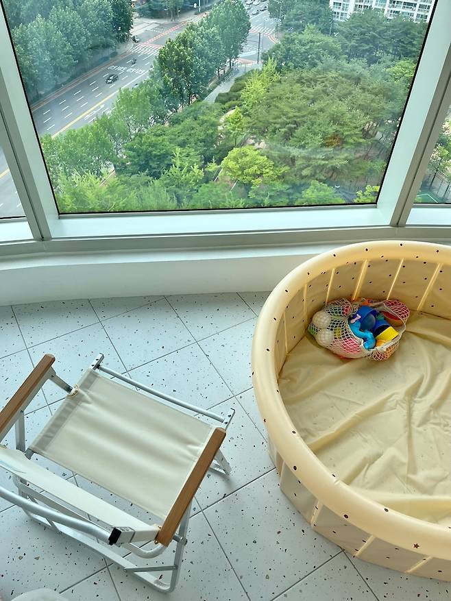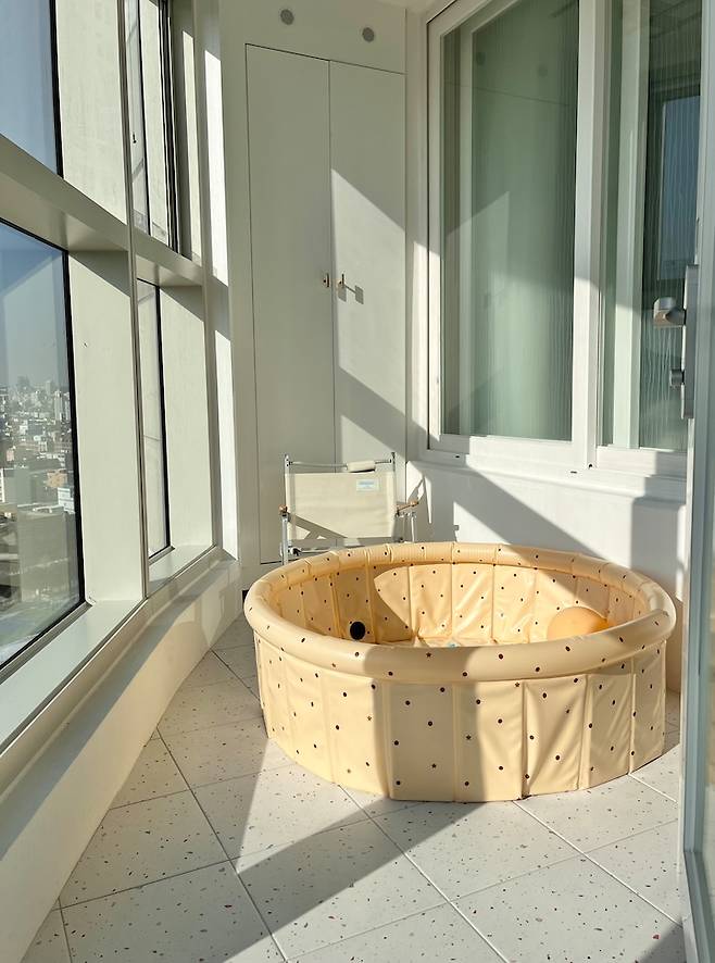 테라스도 통창으로 되어 있고 공간이 꽤나 넓은 편이라 잘 활용하고 싶었어요. 아이가 있는 집이라 아이의 여름철 수영장으로의 변신을 생각하며 리모델링 진행했어요!