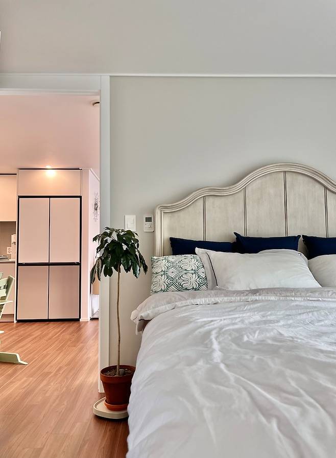 부부 침실은 제가 좋아하는 모던 프렌치 느낌을 조금 담아 봤어요! 부부만의 공간이라 집의 다른 공간들과는 조금 컨셉이 다르기도 하고 제가 좋아하는 신혼가구들을 여전히 킵하고 있는 유일한 공간이기도 해요.