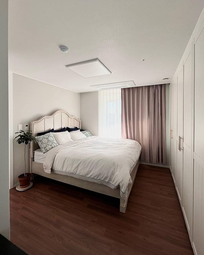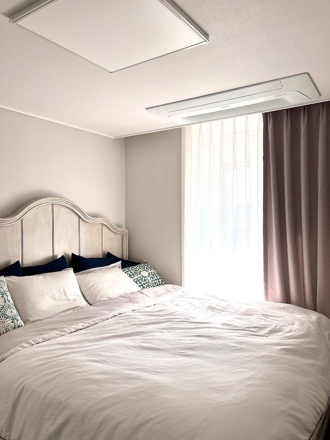 붙박이장이 하면을 가득 채워서 설치되면서 방이 좀 좁아졌지만, 워낙 침대가 커서 좁게 보이는 부분도 있습니다. 하지만 침실에서는 잠만 자길 원했던 부분이라 저에겐 딱 적합한 구성이 되었어요.