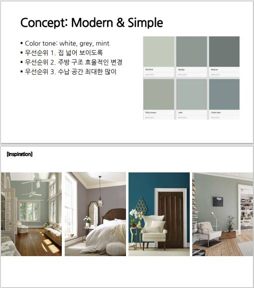 인테리어 시작하기 전에는 저희 집에 필요한 공사 범위를 꼼꼼히 각 공간별로 체크하고, 컬러톤과 컨셉을 참고할 수 있는 레퍼런스 사진들을 정리해서 미팅에 참석했습니다. 인테리어를 처음 하시는 분들께 도움이 될 것 같아 주요 페이지만 첨부했어요!