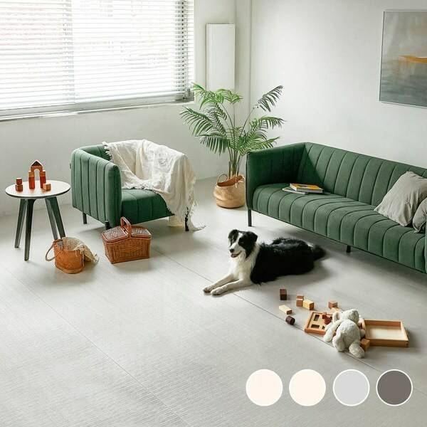 롤형 매트로 바닥 전체 혹은 복도에 깔아두기 좋아요. 바닥에서 잘 밀리지 않아 안전합니다. PVC 특유의 냄새도 거의 없다고 해요. 라이트 그레이, 크림 베이지, 아이보리, 애쉬 그레이 네 가지 색이 있어 인테리어에 맞춰 선택하기 좋습니다.