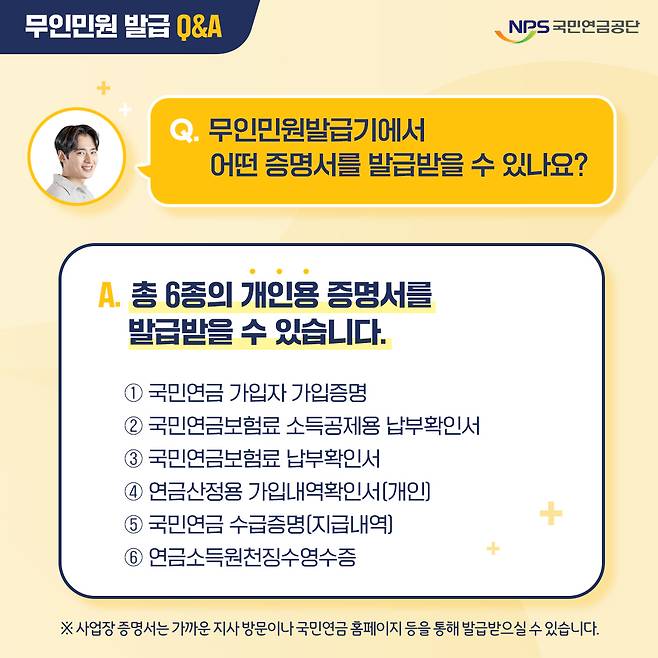 A. 무인민원발급기에서는 총 6종의 개인용 증명서 발급이 가능합니다.
