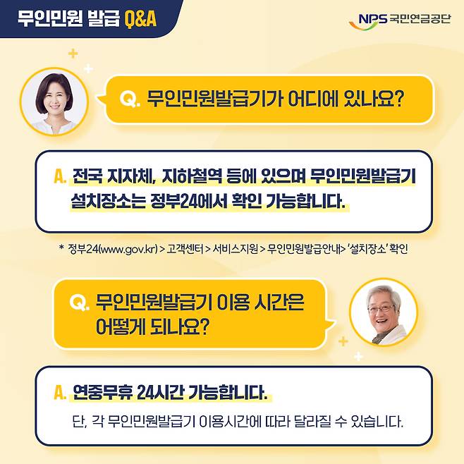 * 정부24(www.gov.kr) >고객센터 > 서비스지원 > 무인민원발급안내> ‘설치장소’ 확인