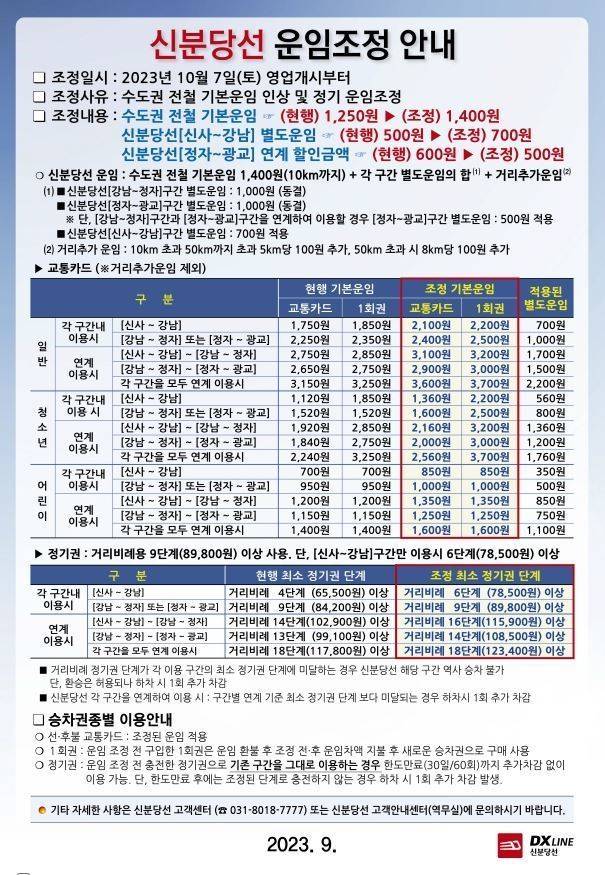 앞서 신분당선은 지난 2011년 개통 이래 2021년 2월, 2014년 8월, 2019년 4월, 2022년 5월까지 모두 네 차례 운임을 인상한 바 있습니다.