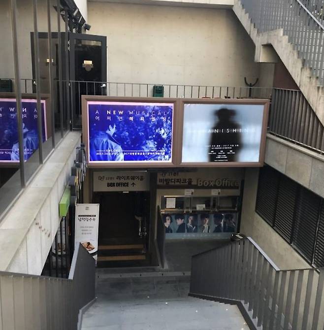 아래로 내려가니 또 새로운 줄이 있었다. 굉장히 복잡했지만 또 다른 절차가 있나 보다 싶어서 나 역시 그 줄에 섰다. 그런데 줄에 서니, 소지한 어떤 작은 종이를 관계자에게 조용히 내밀고, 관계자가 거기에 도장을 찍어주는 것이었다. 나는 그 '종이'를 소지하지 않았기 때문에, 부끄러워하며 그냥 눈을 피하며 도망치듯 조용히 줄을 이탈했다. 나중에 알게 되었다. 그 카드는 ‘재관람카드’이며, 같은 공연을 여러 번 보는 뮤지컬 덕후들이 재관람카드에 도장을 적립하기 위해 줄을 선 것이었다. 그 카드에 도장적립이 많아지면 일종의 혜택 – 할인권, 대본집 등등 – 이 제공되는데, 뮤지컬을 처음 보는 내가 그걸 알 리가 없었다.