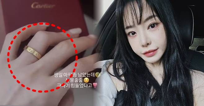 지난 27일 서유리는 개인 계정을 통해 고가의 명품 C사 주얼리 브랜드 반지를 선물 받은 모습을 공개했습니다. 그는 "생일 아직 좀 남았는데. 눈물 줄줄. 구하기 힘들었다고"라는 글을 덧붙이며 연인에게 받은 선물임을 간접적으로 드러냈습니다.