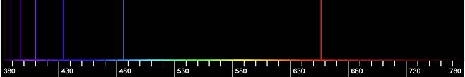 하지만 불연속적 궤도와 양자 도약을 제외하면 여전히 고전역학이 성립한다. 양자 가설과 고전역학의 불완전한 ‘짬뽕’이라고 할까. 중요한 것은 이 불완전한 이론이 당시까지 고전 이론이 설명하지 못한 몇몇 현상을 성공적으로 설명했다는 것이다. 대표적으로 네온 사인과 같이 원자에서 나오는 빛이 있다. 이 빛은 자세히 보면 여러 색깔의 선으로 이뤄져 있어 원자의 선 스펙트럼이라고 한다. 이것은 전자가 한 궤도에서 다른 궤도로 도약할 때 그 차이만큼의 에너지가 빛으로 나온 것이다 (그림 1).